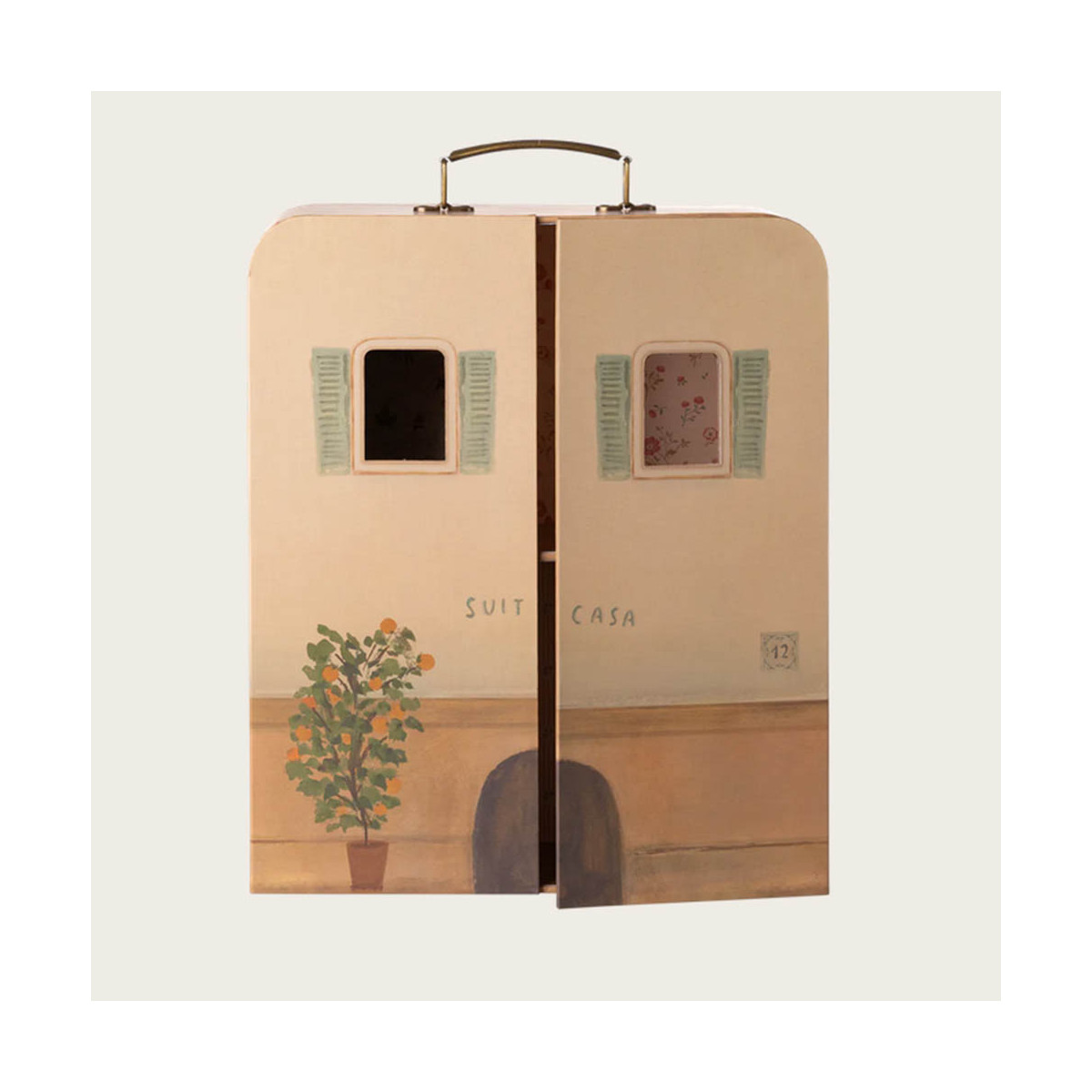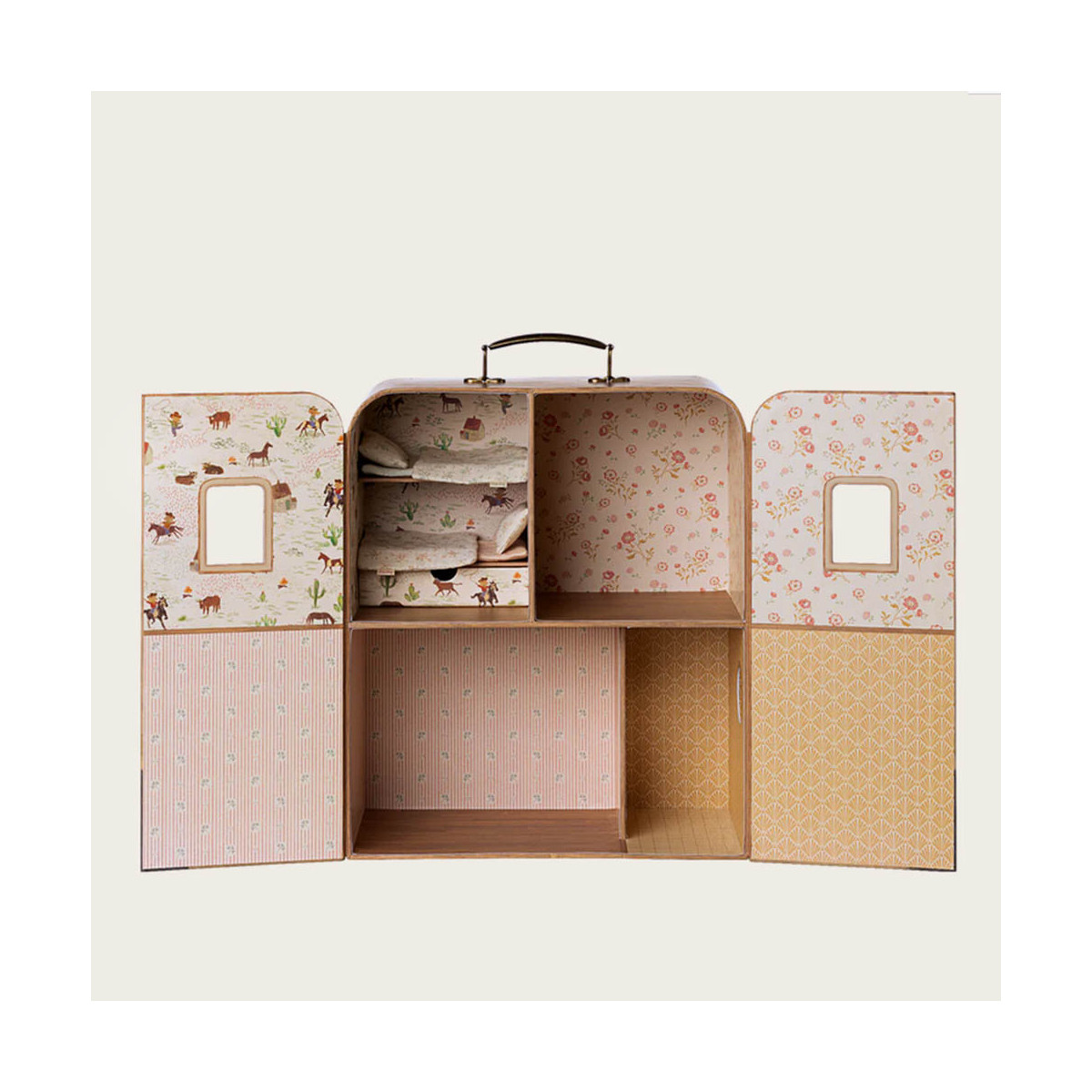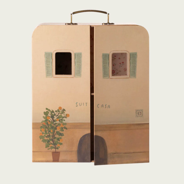Welcome to SuitCasa - a small portable house. It fits the size: Littlebrother and sister mice. 2 sets of soft bedding for your friends are included but you can buy several of other small furnitures to decorate the house.