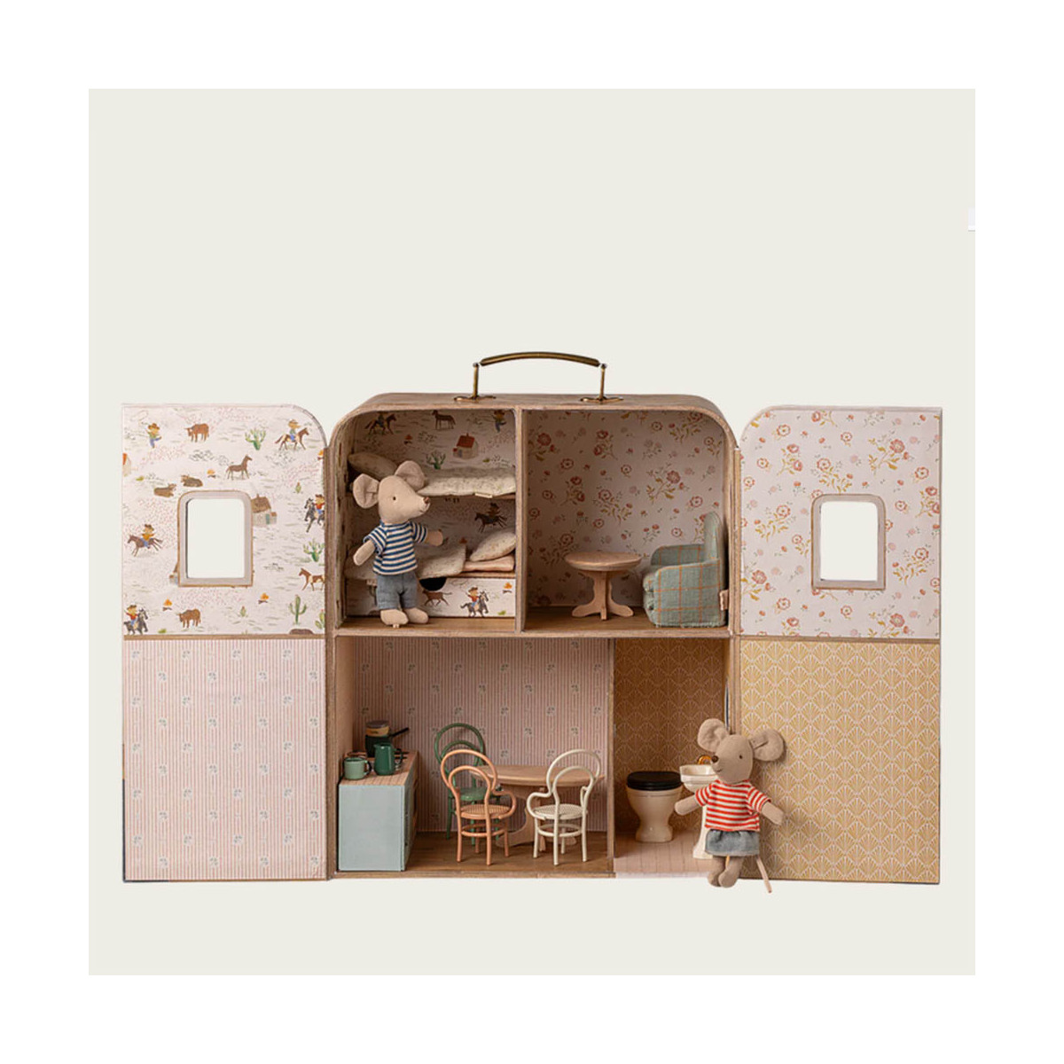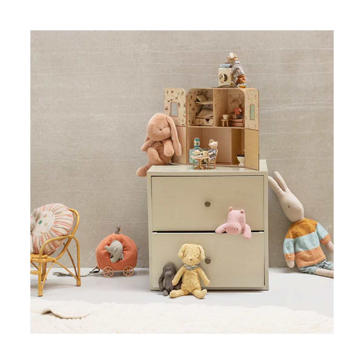 Maileg offers animals, furniture, accessories, and sets the scene... The games offered remain "open" to stimulate inventiveness while having fun and "free" so as not to hinder faculties. Your child creates magic by inventing entertaining stories in his own universe and without limits for his creative potential.