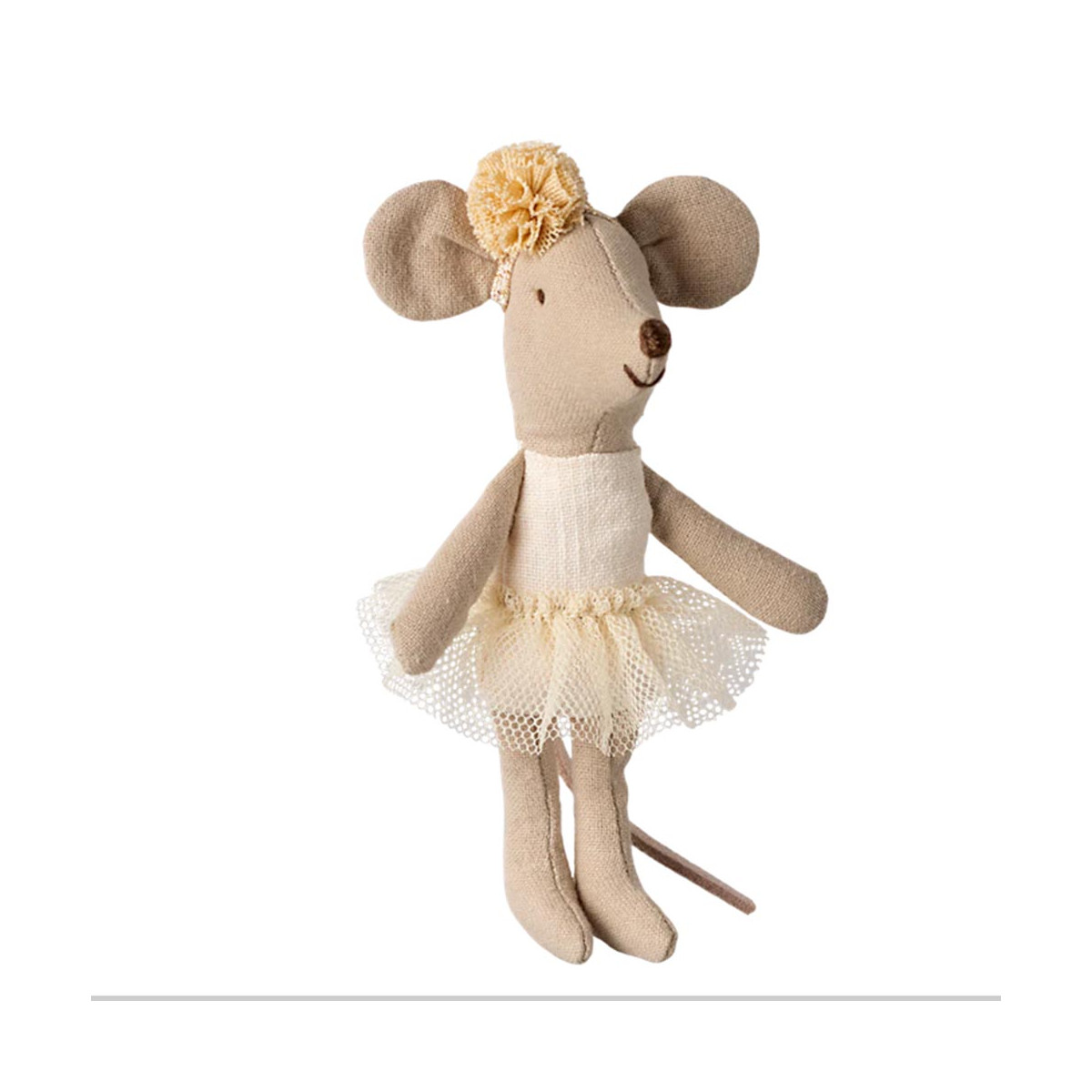 Wow! But what do we have here? Without a doubt the prettiest liitle sister mouse in the current collection! With her tulle skirt matching her body-suit and her head-band, we can easily imagine her as a principal dancer in one of the most prestigious ballets of the opera, or even , in the Maileg castle, as a princess...