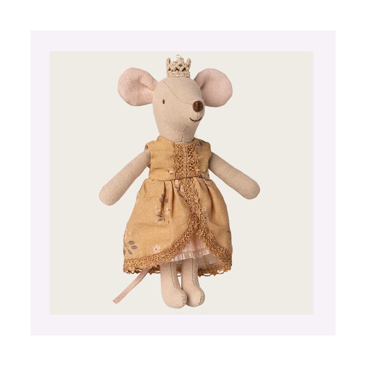 Wow! But what do we have here? Without a doubt the prettiest mouse in the current collection! With her golden dree, her white petticoat and her golden crown, we can easily imagine her in the a castle.