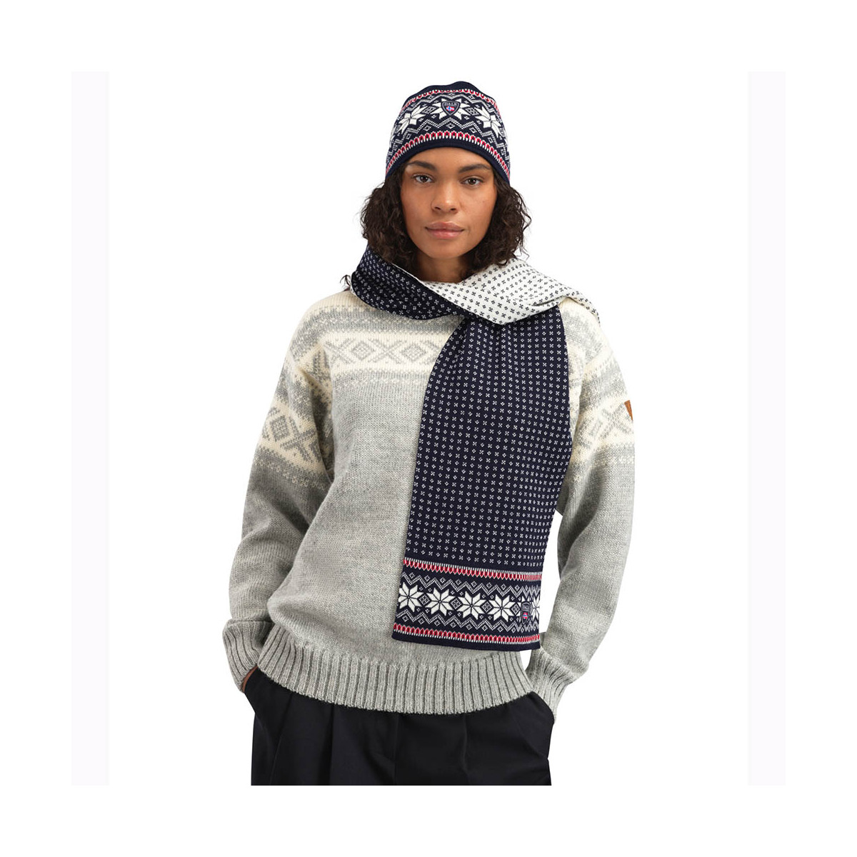 A warm and soft scarf featuring a traditional Norwegian pattern design. Made with 100% merino wool, the Garmisch scarf is itch free, breathable, and moisture-wicking.