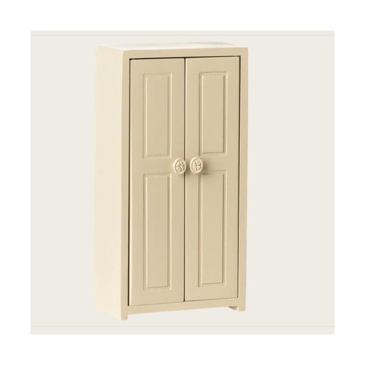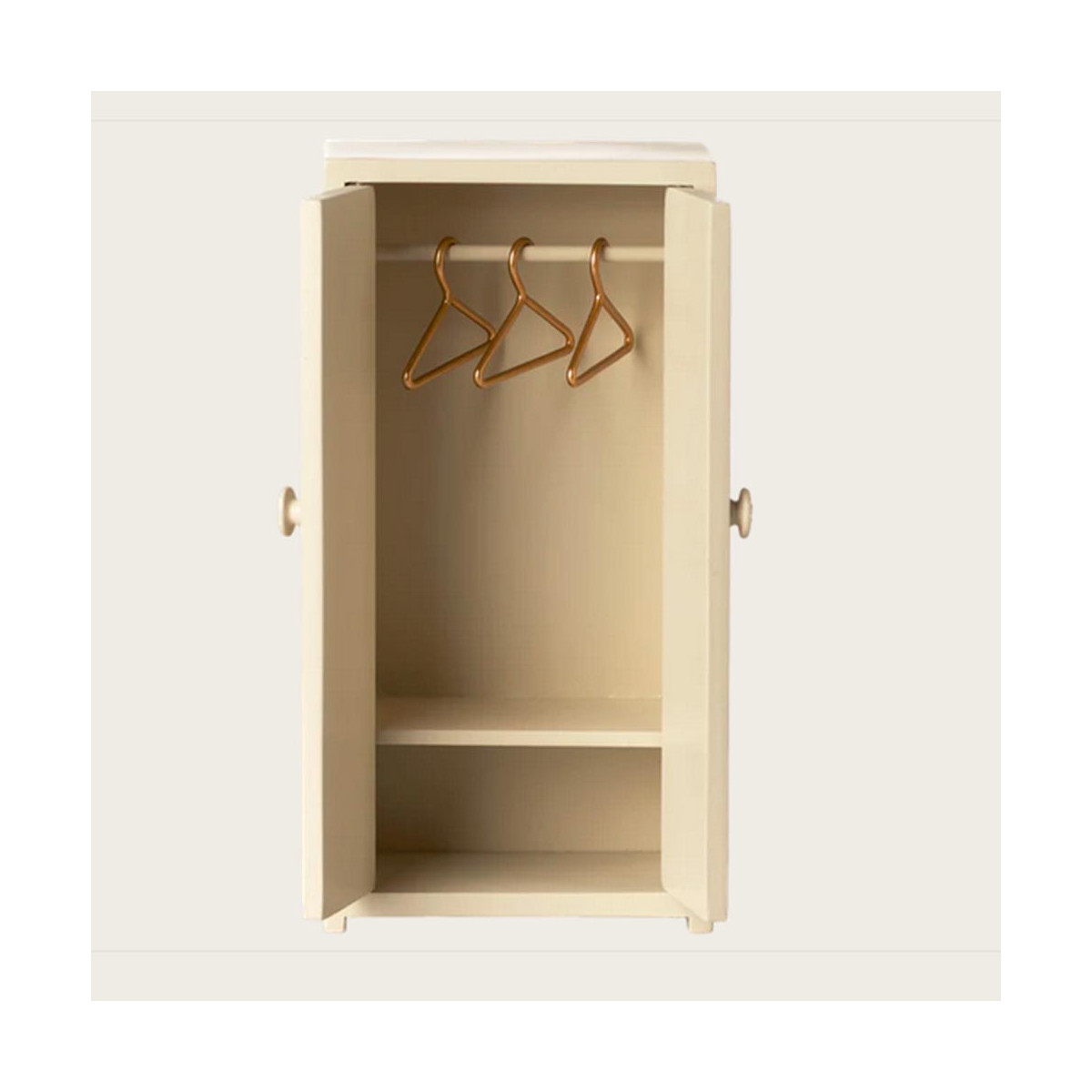 Cette petite armoire en bois permettra à la famille souris d'organiser sa garde-robe. La penderie est livrée avec 3 jolis cintres dorés.